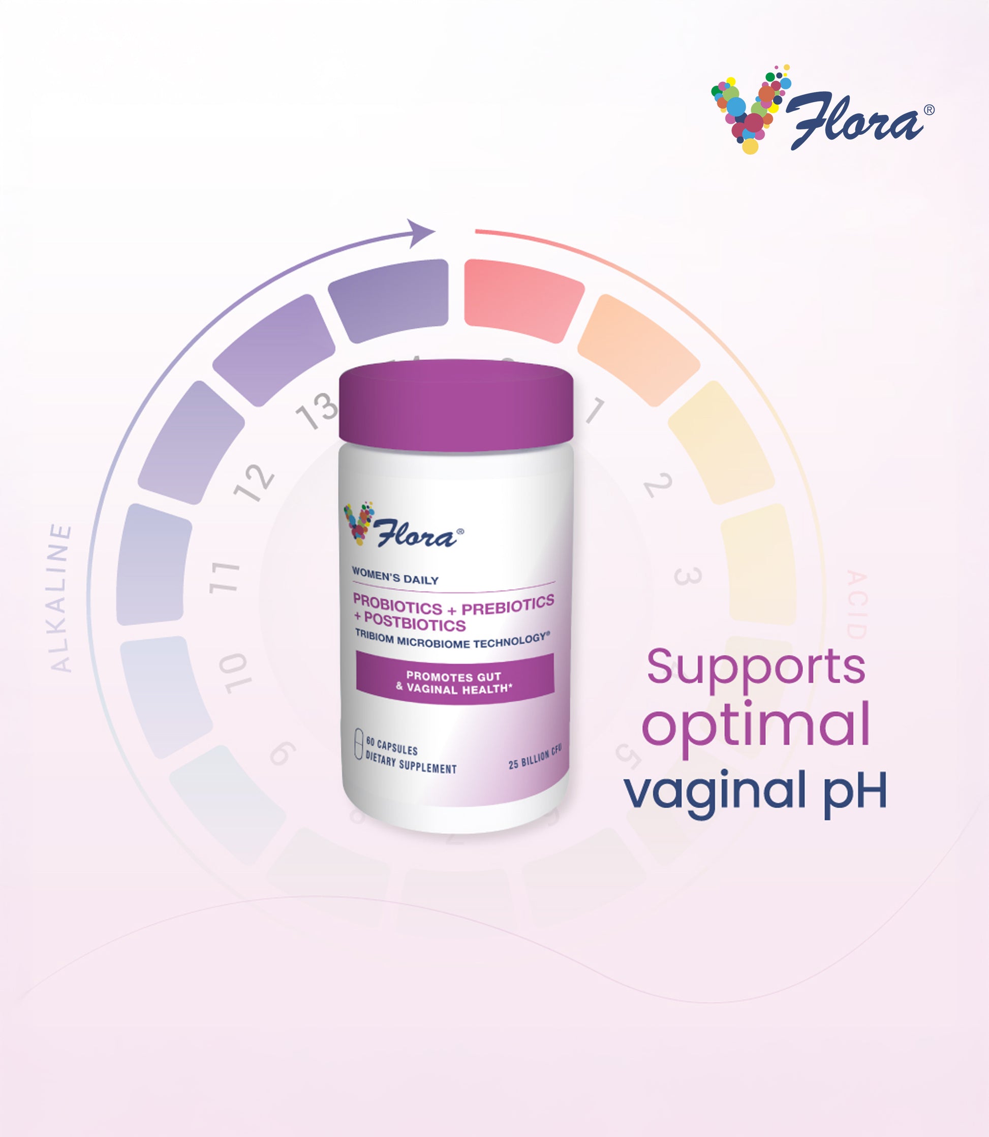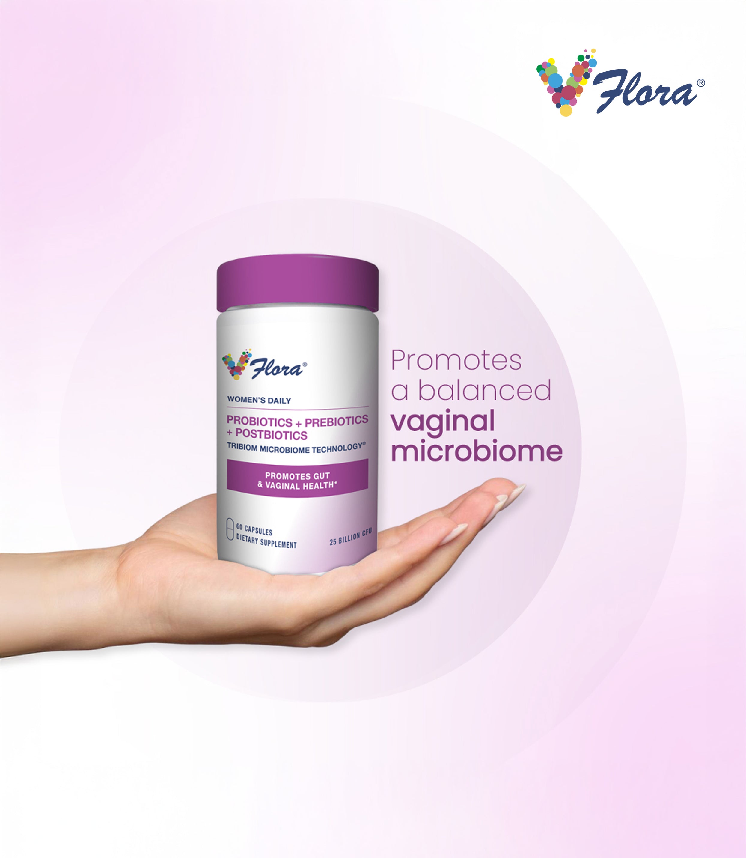 Support your gut and vaginal health every day with VFlora Women’s Daily, a targeted formula designed to strengthen your microbiome and promote overall wellness. Featuring the advanced TriBIOM Microbiome Technology, this daily probiotic supplement delivers a unique blend of probiotics, prebiotics, and postbiotics, along with D-Mannose, Human Milk Oligosaccharides, and Lactoferrin to maintain optimal pH balance and immune support. Formulated specifically for women, VFlora helps improve digestive balance, vaginal flora, and immune health - all in one easy, daily capsule.