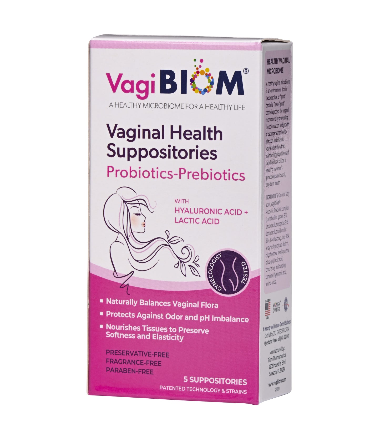 Experience the transformative care of VagiBiom® Natural Feminine Suppository, a patented clincally-proven formula designed to restore and balance your vaginal Lactobacillus flora. Infused with probiotics, prebiotics, and hyaluronic acid, this hyopallergenic VagiBiom® formula redefines intimate health with safe, effective, and trusted care.